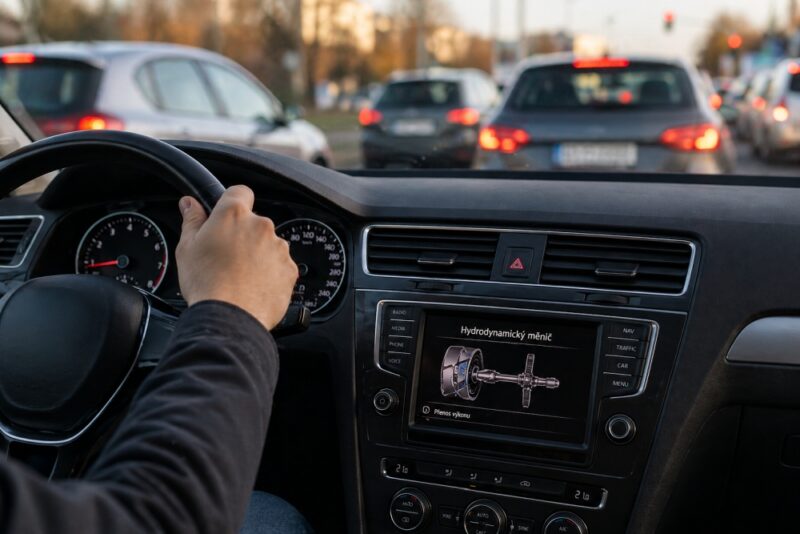 - Mírné prokluzování při rozjezdu – hydroměnič nefunguje jako klasická spojka, takže určitý skluz je přirozený